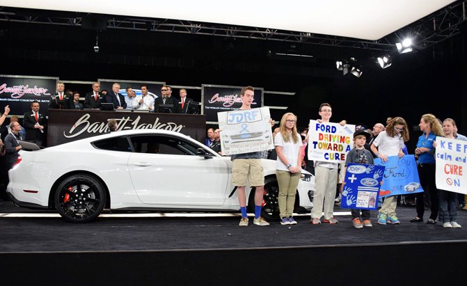 Nors Shelby GT350R debiutavo tik prieš kelias dienas Detroito automobilių parodoje 2015 metais, Ford skubiai pasirūpino, kad šis modelis, sulaukęs didelio susidomėjimo, galėtų atnešti kuo daugiau lėšų labdarai. Šis automobilis, turintis VIN#001, buvo parduotas už 1 milijoną dolerių, pralenkdamas kitus šio savaitgalio aukcionus, įskaitant pirmąjį Cadillac CTS-V gamybos modelį (170 000 dolerių) ir pirmąjį Chevrolet Corvette Z06 kabrioletą (800 000 dolerių).